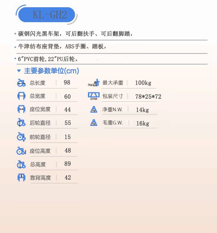 > KL-GH2功能型鋼管輪椅