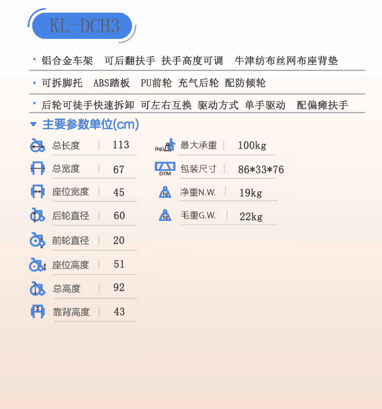 > KL-DCH3偏癱輪椅